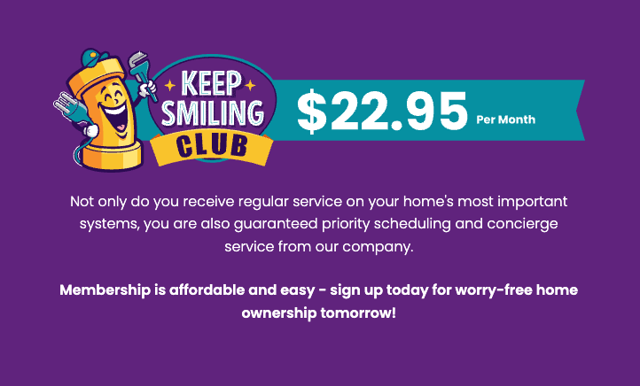 Keep Smiling Plumbing Electric Heating and Cooling is proud to be a one-stop shop for home system solutions. And when you join the Keep Smiling Club, you find peace of mind regarding your home maintenance. Membership includes regular service on your: